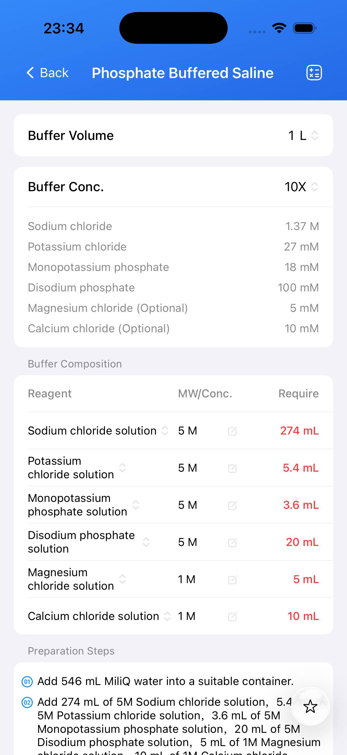 - Calcium chloride and magnesium chloride are optional; add according to experimental needs.