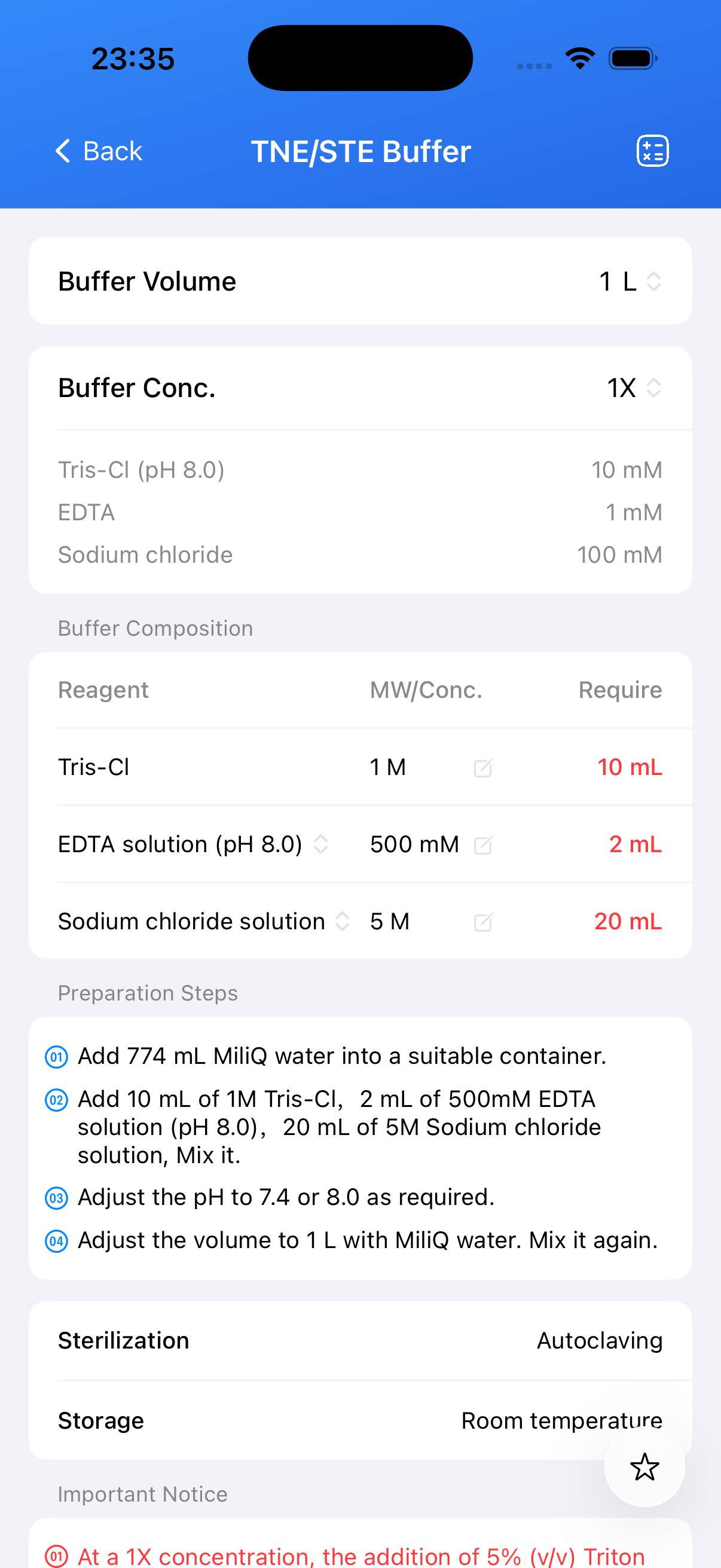 This guide describes the preparation of TNE/STE Buffer at a defined molarity for laboratory use.