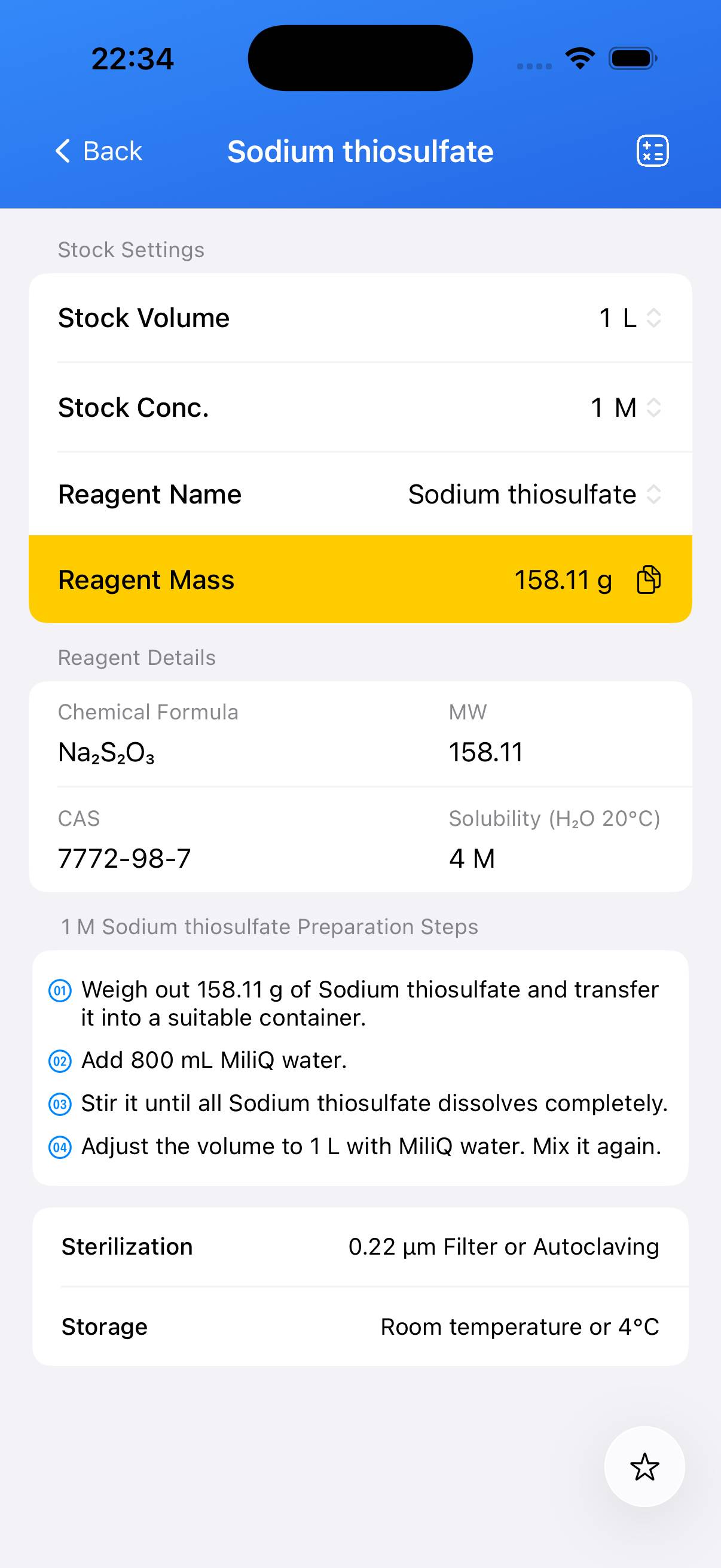 This guide describes the preparation of Sodium thiosulfate Stock Solution at a defined molarity for laboratory use.