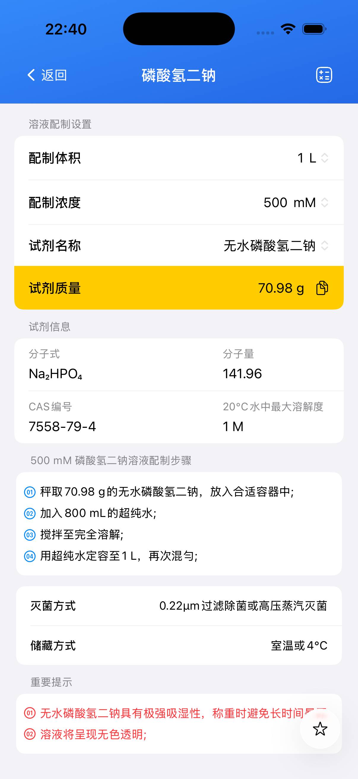 - 二水磷酸氢二钠易吸湿,称量时应注意。