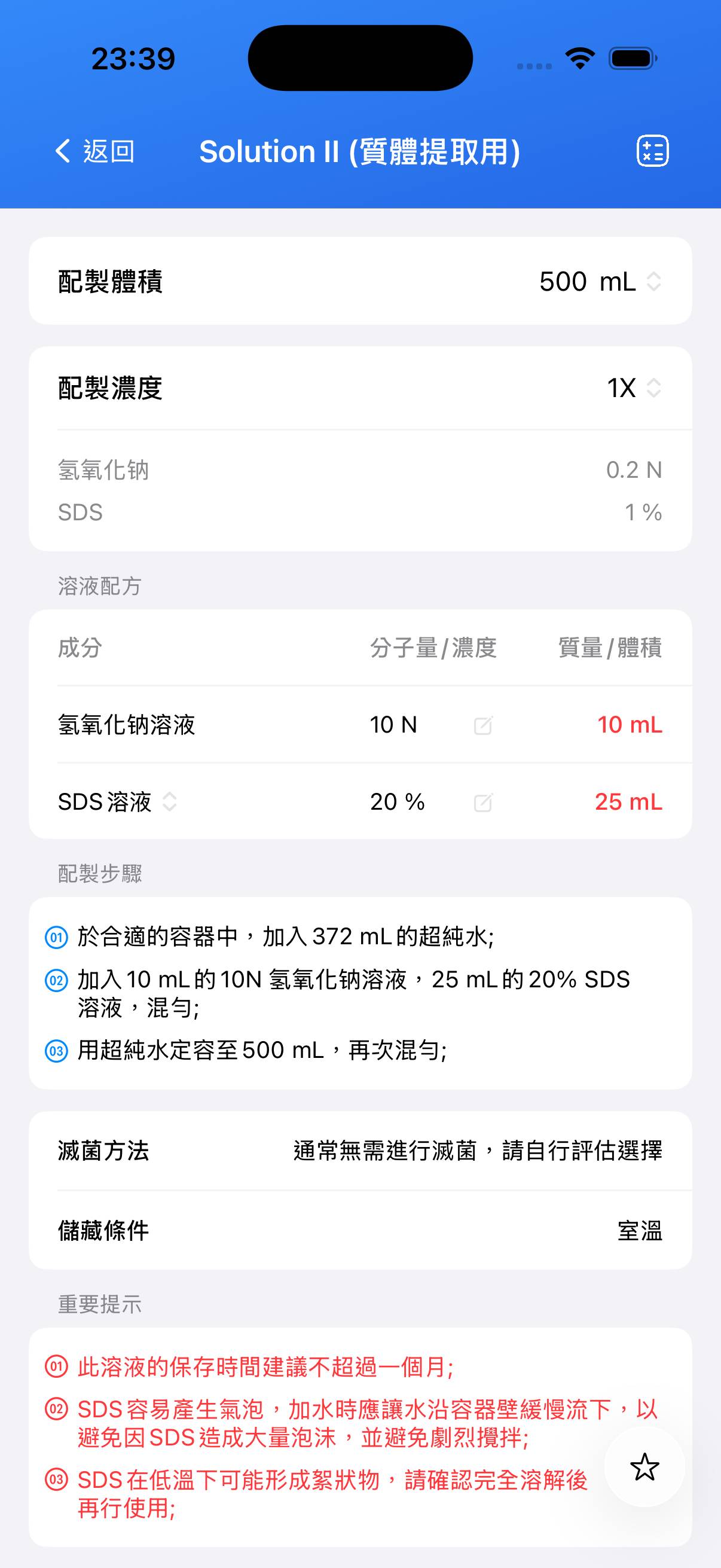 - SDS在低溫下可能形成絮狀物,請確認完全溶解後再使用。