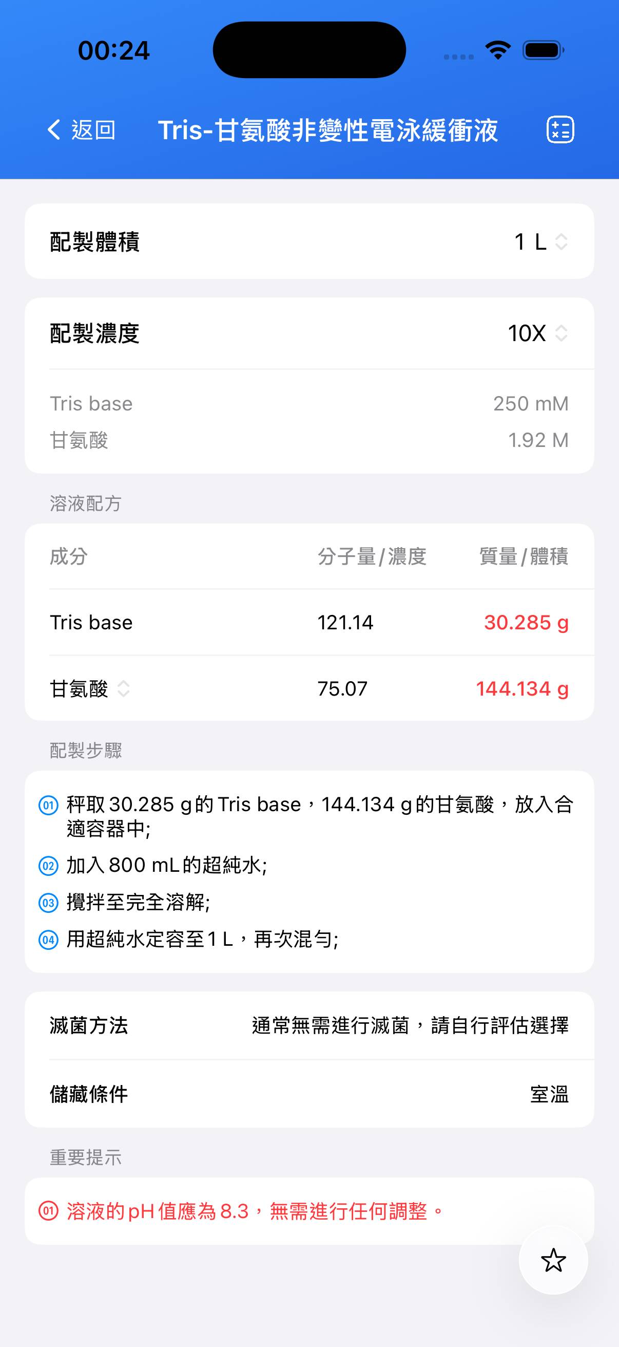 - 溶液的 pH 值應為 8.3,無需進行任何調整;