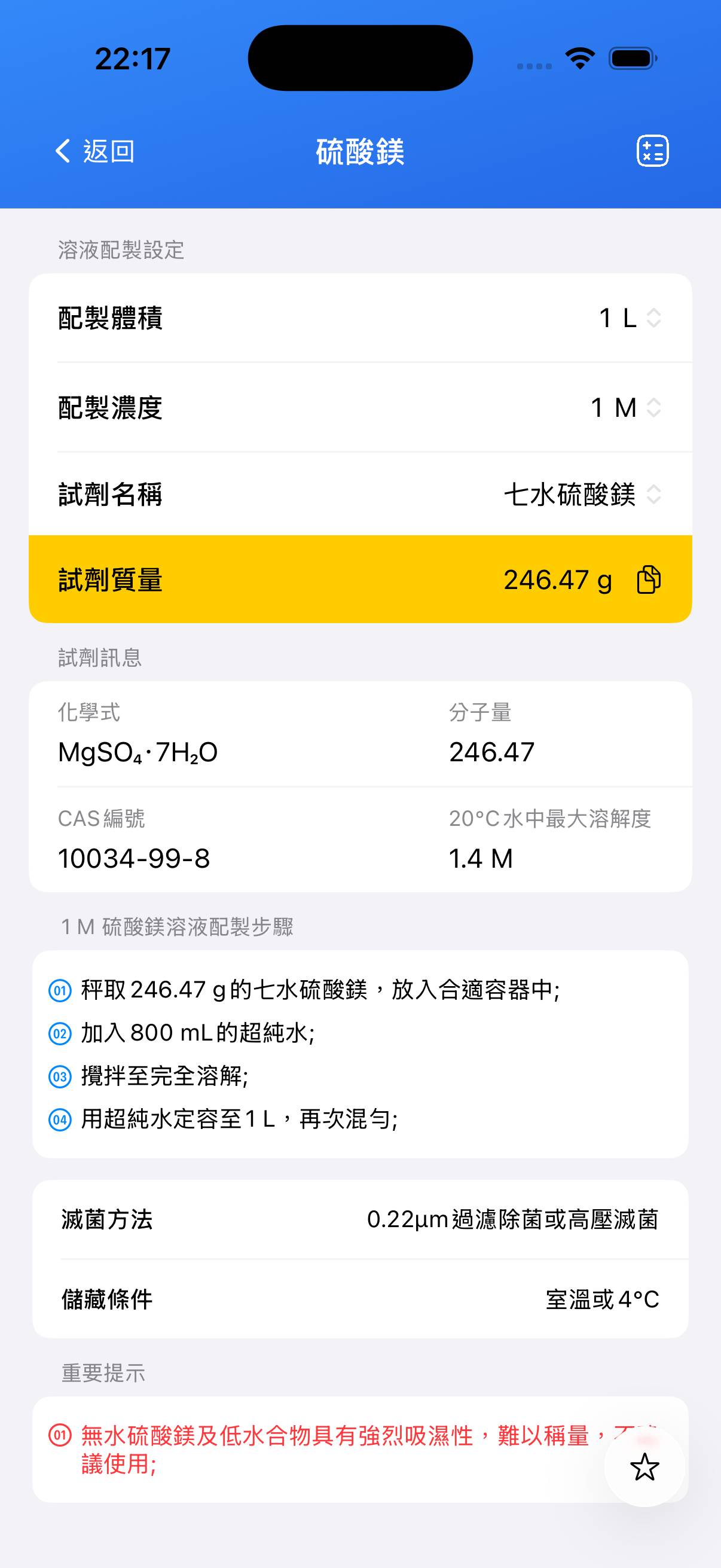 儲備溶液配製指南 —— 硫酸鎂 (MgSO₄) 溶液